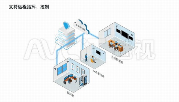 通过在各检察院,看守所部署分布式系统,借助现有的视频专网进行系统组网,即可进行各方之间跨区域的高清音视频传递与设备智能化控制。