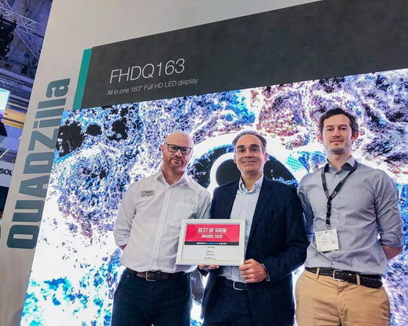 全新QUAD系列LED一体机成为本届ISE展会一大亮点,它充分体现了LED屏幕轻薄易组装优势,并将视讯处理器直接嵌入LED屏幕,实现了真正的一体化设计。这款新品提供163英寸Full HD LED广视角精细大画面,简化了工程安装过程及时间,大幅降低项目成本,非常适合会议室、展览表演、电视演播厅等大型专业视听场合,此次首秀赢得媒体与用户的高度认可,一举拿下权威科技媒体“Installation”评选的“BEST OF THE SHOW”大奖。