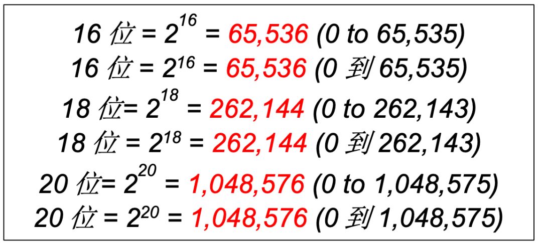 图3: dac分辨率转换为代码数的计算(16到20位)