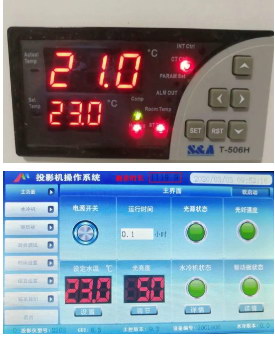 设备开启无异常后,可以开启光源,加载影片进行影片播放。光源开启前,确保水冷机温度正常(排风或者空调正常工作)。
