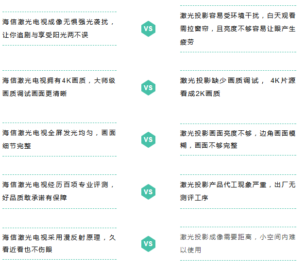 与按照投影的标准打造成投射工具的激光投影设备不同,海信激光电视虽是以激光作为画面呈现方式,但严格坚持以电视标准打造,所以在许多基础方面与激光投影都有差别!