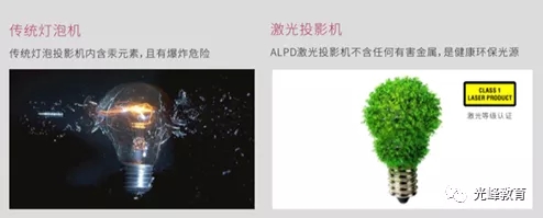 光峰商教投影机采用激光光源,不含任何有害金属,没有炸灯的危险,并且投影机达到能效1级,环保的同时更加节能。