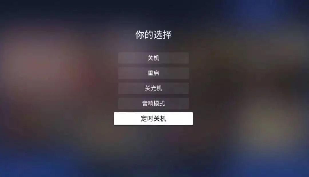 其实,大家可以使用极米的定时关机功能,电影播放结束自己就乖乖地关闭啦,不仅能节约用电,还能延长使用寿命哟。(小提示:短按遥控器上的电影键,就可以进入到定时关机页面啦)