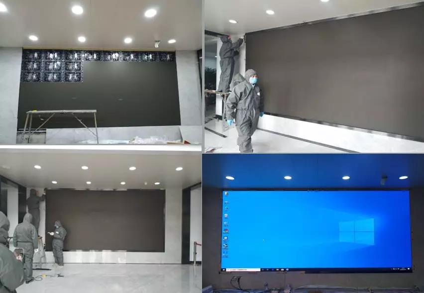 在诸多疫情防控服务案例中,洲明为河北省保定市定兴变电站搭建的疫情防控指挥中心,仅用时4天就完成了全部安装调试工作。在该项目中,洲明以敢为人先的精神,快速响应客户需求,竭尽全力为该单位的疫情防控抢时间、抢效率。项目人员通过高效的前期沟通,加班加点设计方案,确保客户各项需求得到完美满足;面对持续扩散的疫情形势,以及现场无住宿点、无饭店的艰难条件,项目施工人员身穿防护服通宵奋战,顺利完成了大屏安装调试工作。