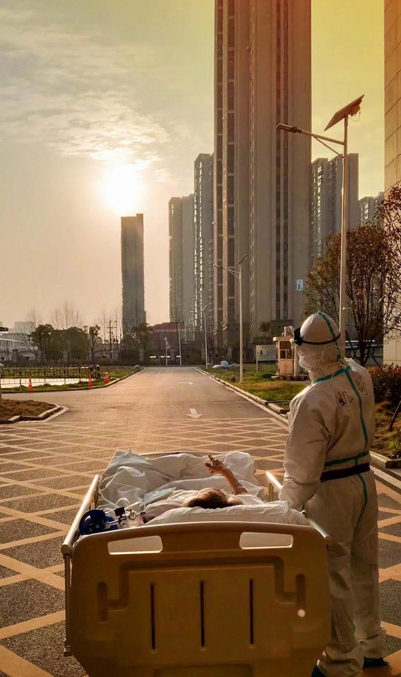 2020年3月5日,一张摄于武汉的照片温暖了人们的心,27岁的刘凯医生在护送病人做CT的途中,特意停下来与住院一个月的87岁重症患者欣赏了日落。