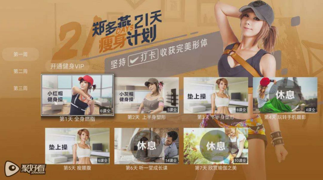 拥有海量健身视频资源的海信激光电视聚好看平台健身频道,以海量优质资源,为你提供全方位的专业指导,满足你的健身运动需求。