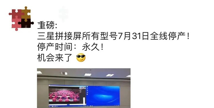 根据传闻,三星将于今年7月31日停产所有型号液晶拼接屏,并关闭拼接屏事业部。同时还有传闻称LG也将于8月份停产部分型号的液晶拼接屏。