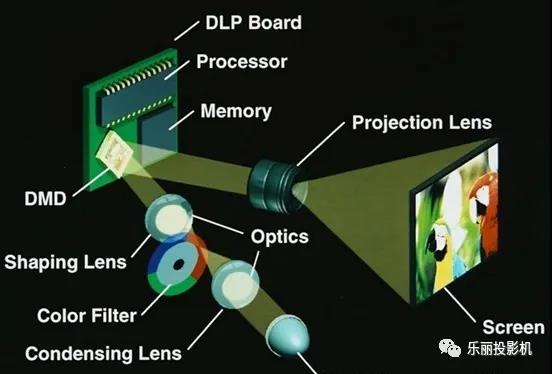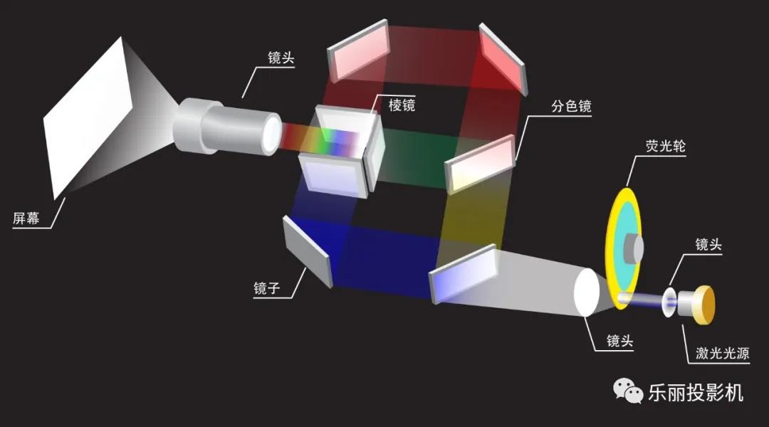 DLP属于折射原理,利用高速旋转色彩轮按顺序显示颜色,同一时间内只能折射一种颜色,也就是说我们想看黄色的时候,DLP是需要一段时间折射红色,一段时间折射绿色,所以这种容易导致”色裂”或者”彩虹效应”.而有些商用DLP为了提高亮度,会增加白色色轮,这样就会造成色彩不够饱满,色彩表现一般.