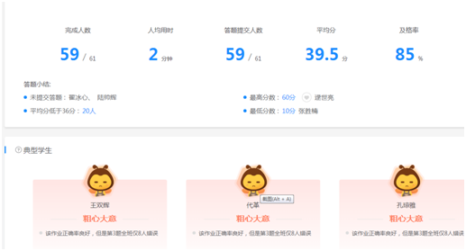 “教师能够在学情反馈中看到每个学生完成作业详细情况,对于学生完成作业的用时快慢,掌握知识的情况等数据情况能够一目了然,很大的减轻了老师的工作任务。”作为英语老师的师老师同样感受到作业报告功能对她教学的帮助。