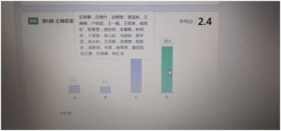 通过网上布置作业,学生网上提交,大大减轻了我们的负担。张老师说:“刚开始我们布置作业,我们是让学生在微信群里发送作业图片,仅仅一一统计作业上交情况,每天都要最少半个小时时间,现在学生上交之后,直接能看到谁没有上交;确实节省不少时间,而且网上布置作业也不复杂,在云课堂里面的答题卡里面可以直接导入准备好word文件,设置一下答案分数,几分钟就能搞定。等学生作业改完后各种分析总计直接出来每道题多少人对,到底是谁对一清二楚。”