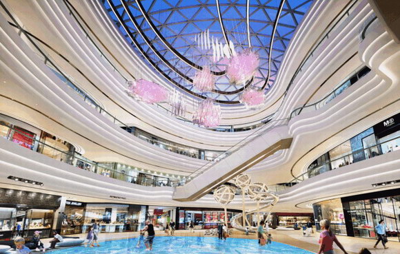 在这里,科技与自然竟然能够和商业体验如此巧妙融合,不仅鸟语花香的绿意森林置景,还有蔚蓝壮阔的海洋。