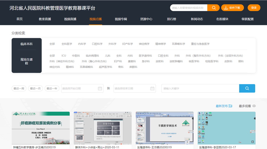 通过锐取医学教育慕课平台,河北省人民院可轻松开展院内在线教育。各科室按照平时要求,将教学查房、病例讨论、小讲座、临床基础理论课程等教学活动进行课程录制,保证疫情防控期间教学进度和教学质量,实现“停课不停教、停课不停学”。