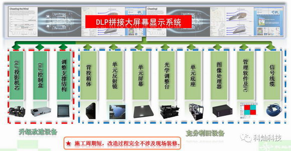 至此,科灿科技的利旧升级改造方案,通过独特的、先进的光学自适应技术,可适用于不同尺寸大小的老旧DLP显示单元进行改造,从50英寸到120英寸,实现了全尺寸覆盖。