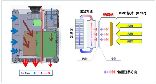 全分离式气流散热系统(左)、珀耳帖液冷散热技术(右)