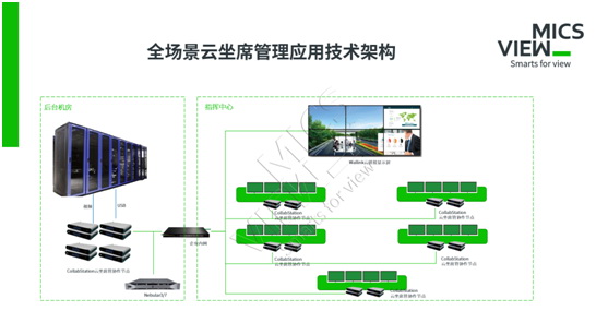 依托企业内网,通过端节点将后台信号与CollabStation云坐席连接,实现每一个席位都具备对后台的控制。同时它也可以与MICS云打通,享受MICS云服务。这种架构具备拓展性,适应所有以坐席为主的应用场景。