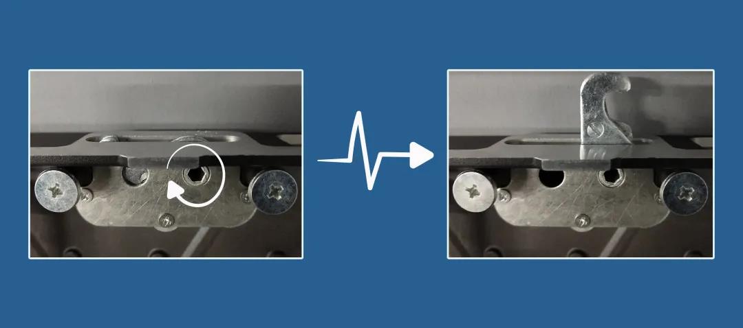 ▲ 旋转内六角螺母,转出边锁卡舌连接箱体