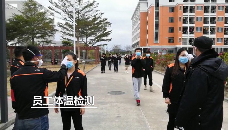 多方筹措采购口罩、体温测量仪、洗手液、消毒液、消毒酒精等防疫物资,无论是深圳总部还是惠州生产基地等均设置疫情防疫体温检测点,对交接班的值班人员和进入办公楼/园区人员进行了实时登记、体温检测及消毒等,全面部署加强防疫防控措施,铸就员工健康守护线。