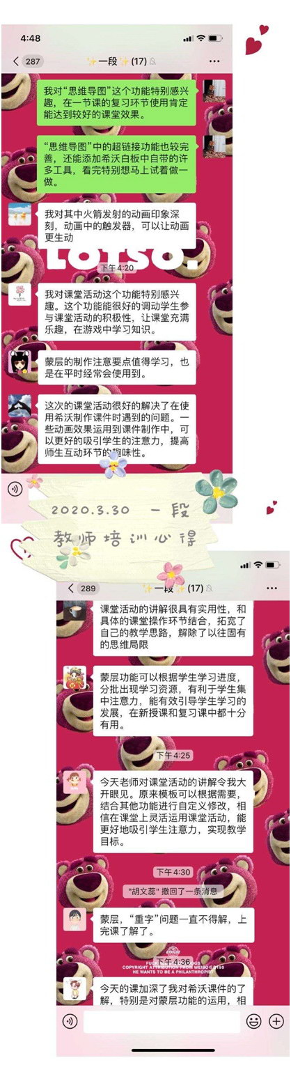 培训结束后,老师们在年段群里都纷纷亮出自己的感悟和见解