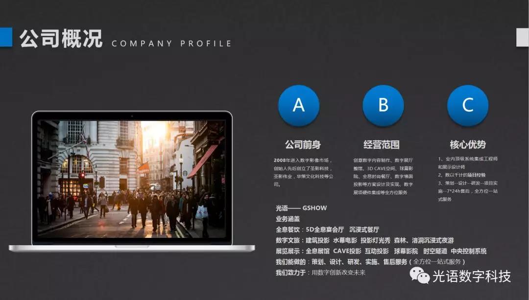 光语数字认为未来旅游行业的核心资源不是名山大川,而是对游客消费心理和行为的理解和把握,这也是未来旅游的终极形态。深圳光语数字深耕数字创意行业十余年,一直致力于数字多媒体展示服务和前沿多媒体展示技术探索与研究,善用数字影像技术打造沉浸式夜游、全息灯光节、时光隧道、数字投影、数字交互技术、多媒体展项研发、5D全息宴会厅、全息网红餐厅、全息展览展示、企业数字展厅等。