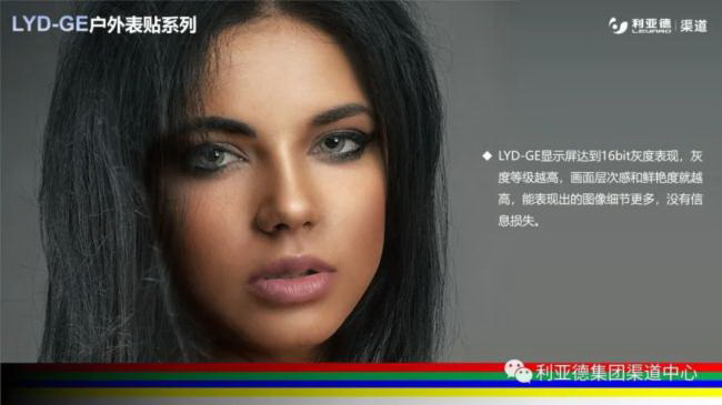 LYD-GE显示屏达到16bit灰度表现,灰度等级越高,画面层次感和鲜艳度就越高,能表现出的图像细节更多,没有信息损失 。