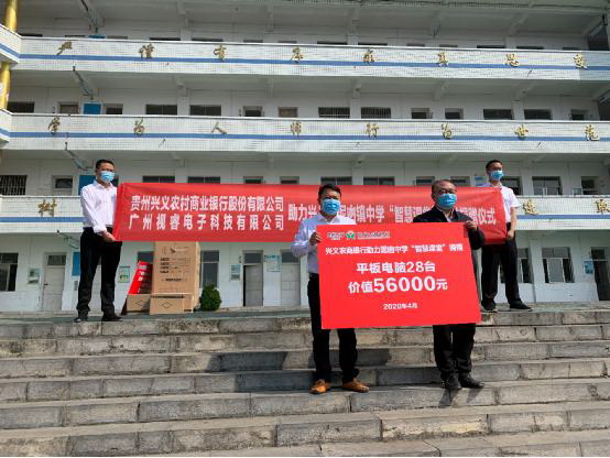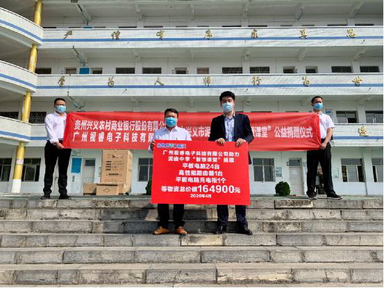 4月16日,广州视睿(希沃)电子科技有限公司和贵州兴义农村商业股份有限公司助力兴义市泥凼镇中学“智慧课堂”公益捐赠仪式在泥凼镇中学校内举行。