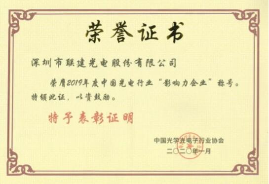 据了解,中国光学光电子行业协会是经国务院批准从事光学光电子科研、生产和教学的企事业单位,现拥有注册团体会员900余个,是光电行业最权威最具影响力的协会之一。此次是联建光电连续三年蝉联该奖项,能从全国数千家参评企业中脱颖而出,也再次彰显了联建光电多年坚持以研发创新带动行业发展的不凡实力。