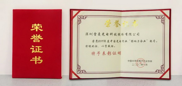 近日,经过网络投票、专家打分、秘书长会议评审等环节,2019年“中国光电行业年度评选”圆满落幕并公布各奖项获奖名单,雷曼光电凭借在2019年的综合发展与对业界的贡献,斩获2019年中国光电行业“影响力企业”荣誉称号。