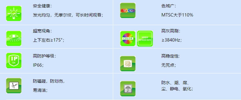 1.面光源,图像显示更柔和,消除摩尔纹防眩光;有效降低光强辐射,减轻对观看者视网膜的伤害;