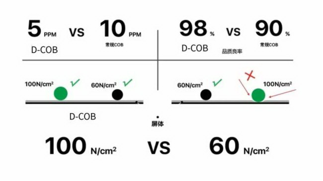 抗氧化:D-COB经过两次封装,具备更好的抗氧性、耐磨性,D-COB与传统SMD相比能够更好的防静电.