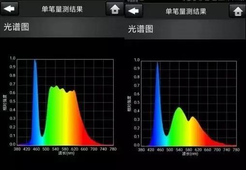 左为激光电视光谱图 右为手机光谱图