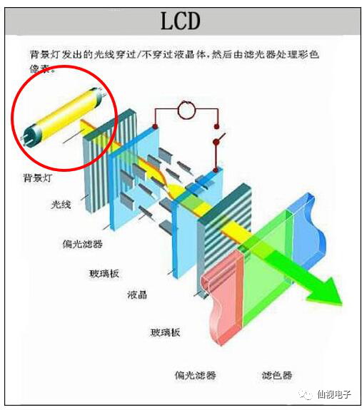 关于LCD透明屏的基本 原理, 实际上它是一个不完整的液晶屏或者说是半成品屏。当初某个工程师突发奇想,去掉了我们正常屏幕后面的背光单元 (下图红圈部分)而发明的一种应用模式,即把要展示的物体置于背光单元及显示层之间(背光箱体之中)。之所以要带有箱体 ,就是需要将后面的箱体作为背光单元使用,不然屏幕是无法正常显示的。