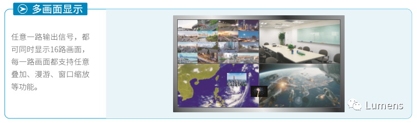实时回显、可显示整面拼接墙的显示图像;实时预监,支持浏览所有输入信号源的实时预览画面。