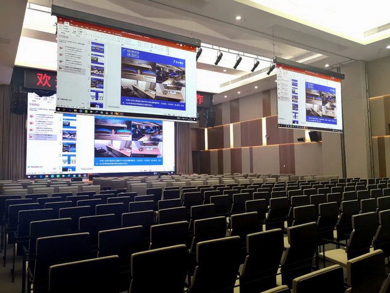 中国武汉的国电长源电力有限公司五楼报告厅使用 Christie D20WU-HS 投影机,定期向员工通报企业最新情况。2019 年 12 月启用,用来举办专题报告会、业务启动会、股东会议等,以及节日期间进行演出使用。