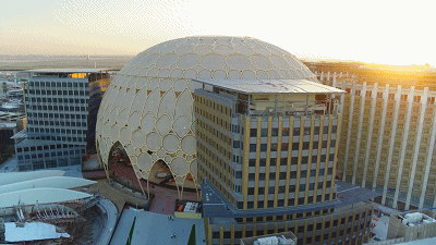 而在世博会期间一个巨大的圆顶将成为世博会的心脏,全世界来自192个国家/地区的人们在此聚会,这便是“Al Wasl Dome”