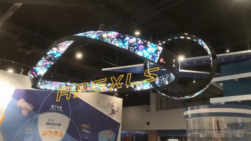 来到科技生活馆,康硕展创意LED莫比乌斯环型显示屏正用光影演绎永不完结的故事,诉说永恒的传奇。它是显示屏,更是艺术品,与3D、互动、投影、VR等先进技术交织,时刻散发着显示与艺术的魅力。