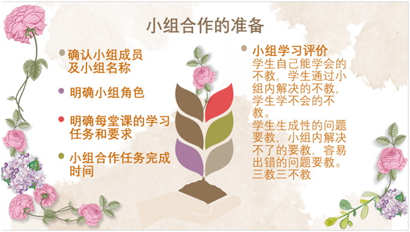 分组时将6人分为一组,建议围坐一起,(排除疫情期间),每人都有具体分工,都有事做。