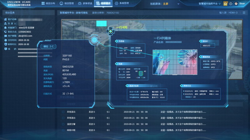 通过Ucare,客户可随时查看屏体间距、分辨率、刷新率等各项数据,时刻掌握拼接系统、发送卡、光学、传感器等参数和设备状态,让您在视频源定制、应用拓展及日常使用中更省心。