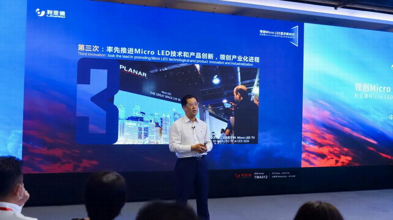 2020年7月15日下午,利亚德在集团总部召开Micro LED商显产品上市发布会,通过线上直播,面向全球发布40英寸2k(P0.4)、54英寸2k(P0.6)、67英寸2k(P0.7)、81英寸2k(P0.9)四款量产Micro LED商用显示产品,以实际行动领创Micro LED的产业化进程,同时也标志着Micro LED显示新时代正式到来。