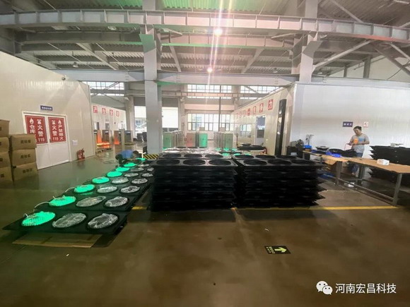 领导们首先来到宏昌科技智能交通产品生产厂区,详细了解智能交通信号产品的生产和应用功能,宏昌科技智能交通事业部总经理王厚强向领导们做了产品讲解。