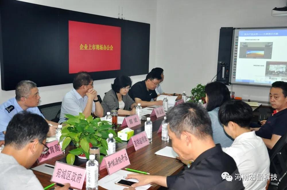 7月15日上午,南阳市人大常委会副主任郭斌和南阳市金融工作局程治敏局长、带领南阳市金融工作局、市财政局、市公安局、市教育局、宛城区政府、高新区管委会、宛城区农信社等单位领导到河南宏昌科技有限公司调研,召开企业上市现场办公会,加快推进企业上市步伐。