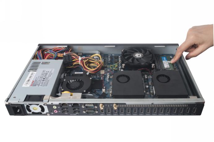 在杰和科技近期发布的嵌入式数字标牌系列产品中,支持十五屏高清视频输出的杰和G1568尤为引人注目。4.3cm的厚度,40cm*23cm的机壳;无需分屏器、高清混合矩阵,就能单机完成15块LCD屏幕的输出和拼接。在商用显示行业内,是难以想象的。如果真如产品描述,可以做到屏幕直连即可输出画面,那么,凭借紧凑的产品尺寸设计,多屏拼接墙方案将能够覆盖更多的场景,为更广泛的拼接屏应用提供技术基础。
