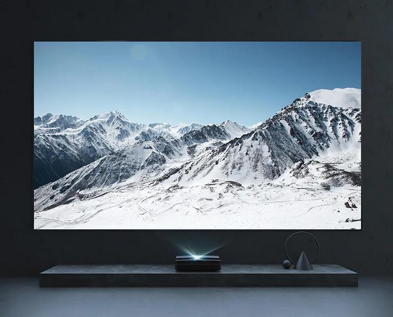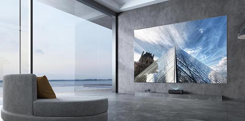 长虹V8S Pro 4K激光电视的投射比是0.21:1,做到更短离墙距离投射100英寸大屏,便于节省家居空间,不留缝,让客厅更美观。