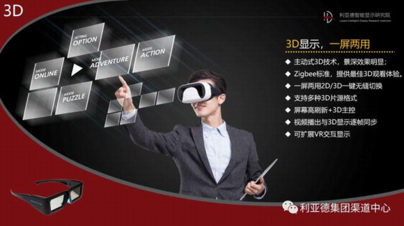VEM系列产品不仅制作考究,同时具备优质的显示效果。产品采用主动式3D技术,景深效果明显 ;Zigbee标准,提供最佳3D观看体验。一屏两用2D/3D一键无缝切换,支持多种3D片源格式,屏幕高刷新+3D主控,视频播出与3D显示逐帧同步,可扩展VR交互显示。