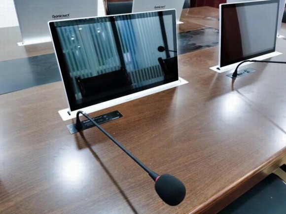 配备嵌入式话筒,不占用会议桌面过多的空间,简洁大方,使用起来方便。