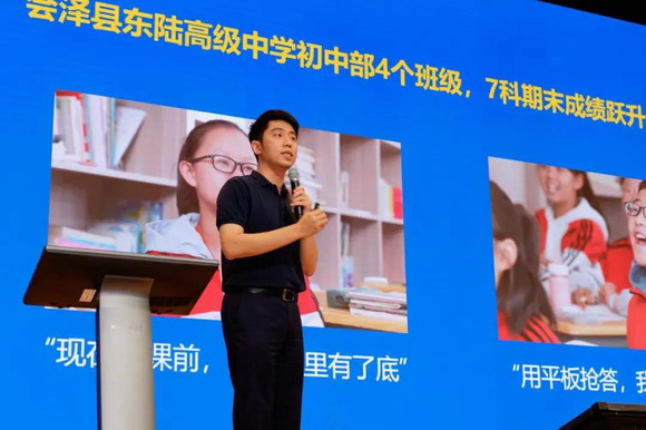 “易课堂的易是‘易用的易’,也是‘变化的易’。希沃易课堂服务课前、课中、课后的教学与学习,致力于为师生提供简易、实用、稳定的信息化工具,以减负提效,推动教育变革。”希沃学务事业部总经理邱澈从产品初衷与产品逻辑讲起,为与会嘉宾介绍了希沃易课堂支撑未来教学变革的理念与途径。中间,他分享了会泽东陆高级中学的7科期末成绩跃升全县第一与明明同学爱上物理课的真实故事,明明同学觉得用平板抢答很刺激,物理课再也不枯燥了。