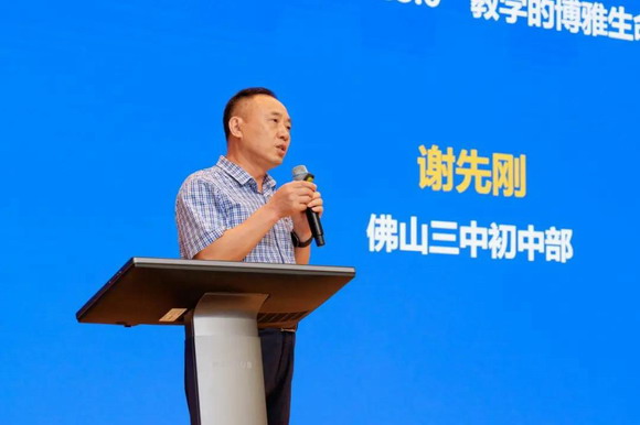 随后,佛山市第三中学初中部校长谢先刚从形成背景、迭代过程与初步效果三个层面,为与会嘉宾带来了他关于C-ice3.0(教育云-探究/对话/体验)式教学与管理的分享。佛山市第三中学初中部基于教育云的智慧课堂教学实验班已从2016年的4个班发展到了今年的36个班级,催生了学校网络环境下的教学新生态与新方式,学生站到了教学的正中央。他认为,平板教学在一定程度上提升了重点高中上线人数、普高上线率,且对优等生的提升作用更加明显。
