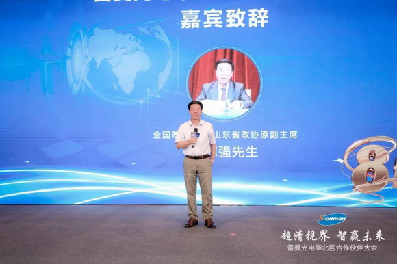 山东省政协原副主席李德强致辞:作为亲历者,我见证了从旧社会到新中国的时代变迁。科技给我们每个人的生活带来了翻天覆地的变化,近几年“超高清”成为热词频繁出现在大家的视野中,雷曼作为探索超高清显示的先驱,其超高清显示产品的画质和色彩令人震撼。作为中国民族品牌,雷曼光电坚持自主创新、产品品质、诚信经营并有所作为是值得肯定的。希望大家同舟共济、精诚团结,为中国超高清显示事业及各地区新基建加速发展助力。