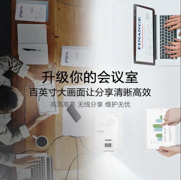 对于不常设投影机的小会议室来说,一台小巧易用的可移动投影机十分重要。爱普生商用投影机新品,体积小巧,便于安装移动,满足会议灵活需求。