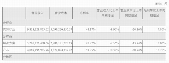 解决方案实现营收52.01亿元,同比下降7.56%;毛利率为47.97%, 同比增长3.86%。