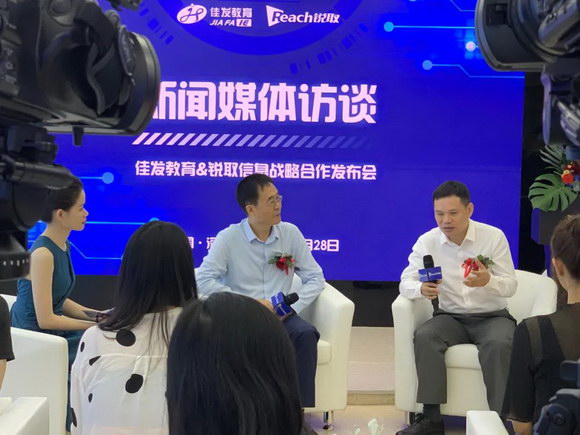 发布会现场双方董事长接受行业媒体专访,围绕 “教考融合”战略合作对媒体提问进行解答。此番跨界融合将势必引领教育领域新一轮资源整合浪潮,引领教育新生态,携手打造更多智慧教育应用。